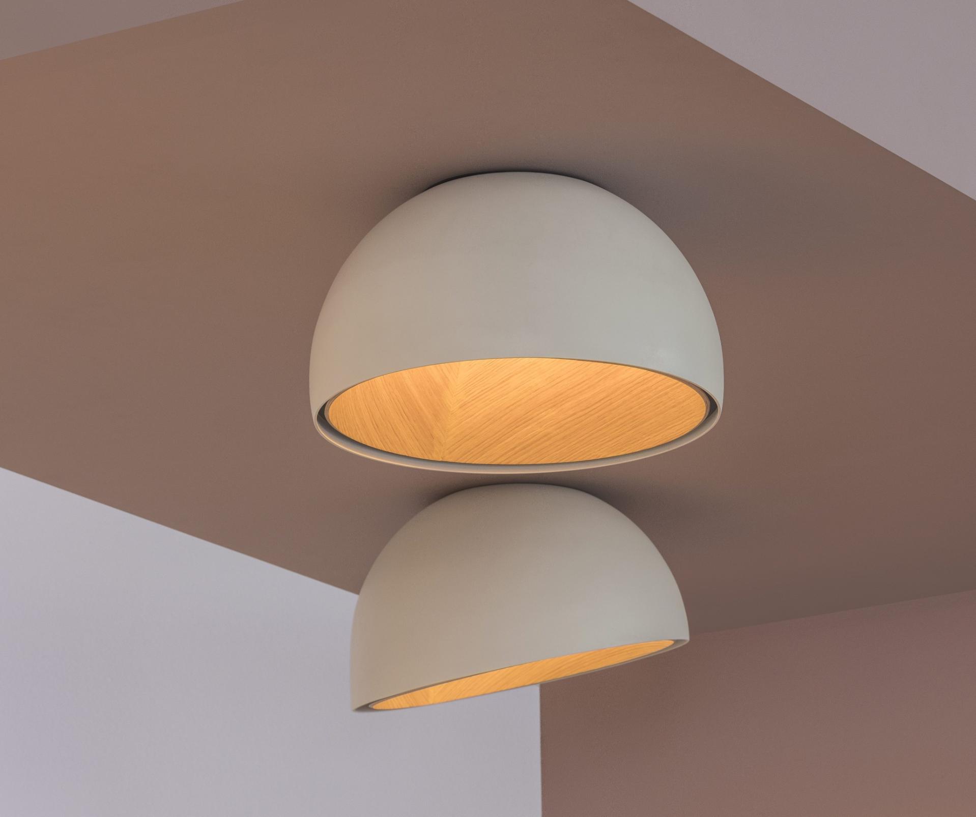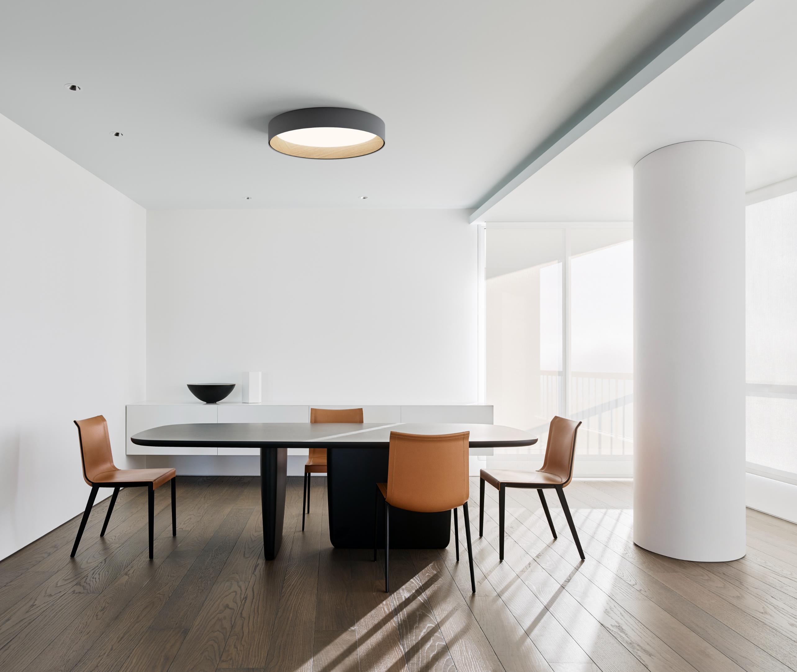 Duo היא מנורת תקרה בעיצוב Ramos & Bassols, המשלבת מראה חם וטבעי של עץ עם מעטפת חיצונית בגווני גרפיט, אוף וויט ולבן.